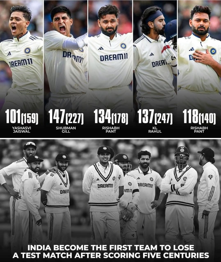 એક એવી રમતમાં જેની સ્ક્રિપ્ટ રાઇટર્સ કલ્પના પણ કરી શકતા ન હતા, ભારતીય ક્રિકેટ ટીમે પાંચ વ્યક્તિગત સીમાચિહ્નો બનાવ્યા – દરેક ઇચ્છાશક્તિ, તકનીક અને સ્વભાવનો પુરાવો – ફક્ત હારેલી બાજુએ મેચનો અંત લાવવા માટે. ટેસ્ટ ક્રિકેટના ભવ્ય કથામાં પહેલીવાર, ભારતે એક મેચમાં પાંચ વ્યક્તિગત સદી નોંધાવી – અને છતાં પણ હાર્યું.