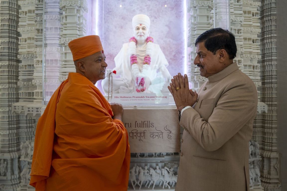 મધ્યપ્રદેશના માનનીય મુખ્યમંત્રી ડૉ. મોહન યાદવે ગુરુ પૂર્ણિમાના પવિત્ર ઉત્સવની ઉજવણી દરમિયાન અબુ ધાબીમાં BAPS હિન્દુ મંદિરની મુલાકાત લીધી હતી.