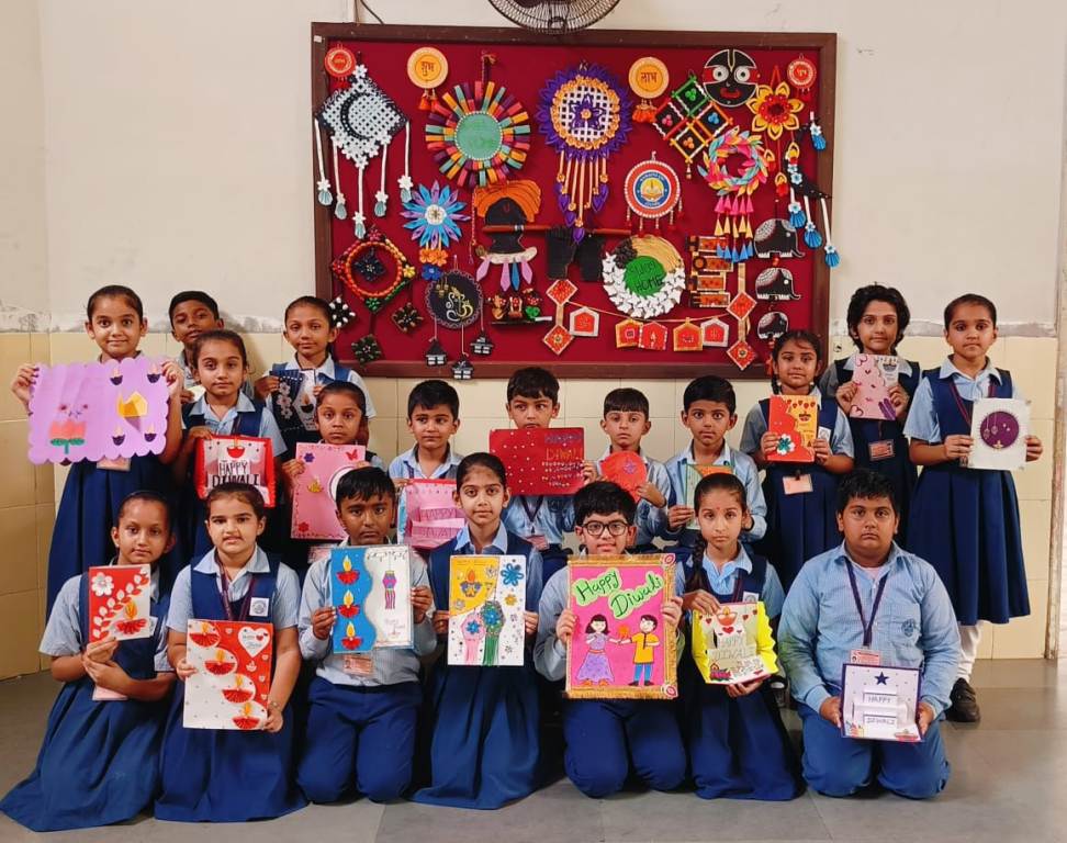 હીરામણિપ્રાથમિક શાળા(ગુજરાતી માધ્યમ)માંદિપાવલી પર્વની ઉજવણીના ભાગરુપે દિવાળી કાર્ડ બનાવવાની સ્પર્ધા યોજાઈ. આ સ્પર્ધામાં રંગીન કાગળ, કાર્ડ પેપર, જરી, સ્ટીકર, ટીલડી, મોતી વગેરેનો ઉપયોગ કરી પગથિયા આકારના, દીવો, શુભ-લાભ, સ્વસ્તિક, શુભ દિપાવલી લખેલા વિવિધ પ્રકારનાં સુંદર દિવાળી કાર્ડ બનાવ્યા હતાં. આ સ્પર્ધામાં તમામ વિદ્યાર્થીઓએ મોટી સંખ્યામાં ઉત્સાહપૂર્વક ભાગ લીધો હતો.
