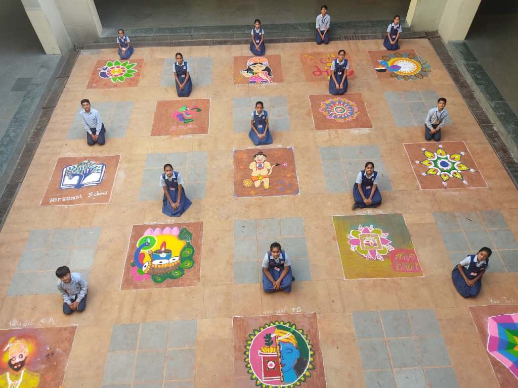 હીરામણિ પ્રાથમિક શાળા (ગુજરાતી માધ્યમ)માં ધો. 1 થી 7 ના વિદ્યાર્થીઓએ દિવાળીના તહેવારને ધ્યાનમાં રાખી રંગોળી સ્પર્ધા યોજાઈ. વિદ્યાર્થીઓ છાતી ચીરી રામ બતાવતા હનુમાન, શ્રી કૃષ્ણ, શિવાજી, હીરામણિ શાળાનું પ્રતિક, વીણા, મોર, વિવિધ કલાત્મક ડિઝાઈન લક્ષ્મીજી, માઁ નું પ્રતિક વગેરે સુંદર રંગબેરંગી – સુંદર ડીઝાઈનમાં રંગોળી બનાવી હતી. હીરામણિ પ્રાથમિક શાળા સમગ્ર સ્ટાફે દિવાળી નીમિત્તે એકબીજાને દિવાળીની શુભેચ્છાઓ પાઠવી હતી.