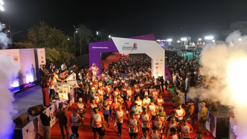 સાબરમતી રિવરફ્રન્ટ સ્પોર્ટ્સ પાર્ક ખાતે યોજાયેલી #Run4OurSoldiers નો ઉદ્દેશ્ય ધરાવતી 9મી અદાણી અમદાવાદ મેરેથોનની ફૂલ મેરેથોનમાં મહિલાઓમાં અશ્વિની જાધવ અને પુરૂષોમાં નિખિલ સિંહ વિજેતા બન્યા હતા સ્પર્ધામાં 24,000થી વધુ દોડવીરોએ ભાગ લીધો હતો. મેરથોનમાં સેના અને પોલીસના 4,000થી વધુ જવાનો અને અધિકારીઓએ ભાગ લીધો હતો.