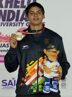 ચંદીગઢ યુનિવર્સિટીએ શિક્ષાએ 15 મીટરનું અંતર કાપતા મહિલા શોટ પુટમાં પણ ગોલ્ડ મેડલ જીત્યો.