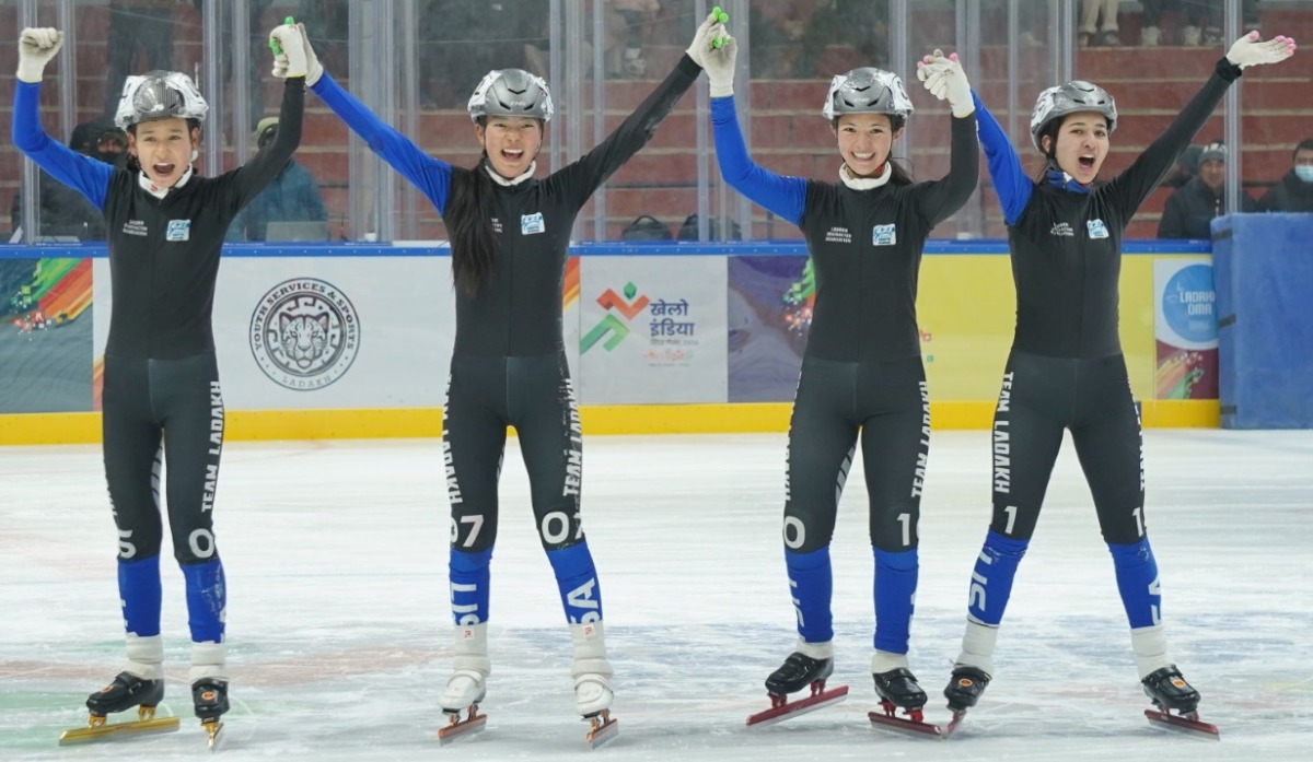 (Short track relay 2000m women): 1. Ladakh (Skarma Tsultim, Shabana Zara, Tasnia Shameem, Insha Fatima) 3:49.23 secs 2. Karnataka (Srija S Rao, Sahasra Nellaturi, H Ramganesh, Shreedhanya P) 4:36.71. 3. Maharashtra – disqualified.