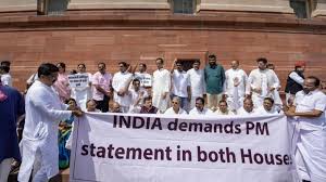સંસદના ચોમાસા સત્રમાં મણીપુર મુદે સરકારને ઘેરવા વિપક્ષ પૂરેપૂરું જોર લગાડી રહી છે. વિપક્ષ દ્વારા સરકાર સામે લાવવામાં આવેલા અવિશ્વાસ પ્રસ્તાવ પર 8 ઓગસ્ટથી 10 ઓગસ્ટ સુધી ચર્ચા કરવામાં આવશે. વડાપ્રધાન મોદી 10 ઓગસ્ટે અવિશ્વાસ પ્રસ્તાવનો જવાબ આપશે. વિપક્ષ સંસદમાં મણિપુર મુદ્દા પર ચર્ચા અને વડાપ્રધાનના નિવેદનની માંગ કરી રહ્યો છે. આ માટે વિપક્ષે અવિશ્વાસની દરખાસ્ત લાવવાનો નિર્ણય કર્યો હતો જેથી સરકારના પ્રમુખ તરીકે વડાપ્રધાન અવિશ્વાસ પ્રસ્તાવ પર સંસદમાં જવાબ આપે. સરકાર પાસે બહુમતી છે તેથી અવિશ્વાસ પ્રસ્તાવથી સરકારને કોઈ મુશ્કેલી નહીં પડે.