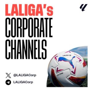 LALIGA ની કોર્પોરેટ ચેનલો આ વર્ષની શરૂઆતમાં જાન્યુઆરીમાં સ્થપાઈ ત્યારથી મજબૂત વૃદ્ધિ નોંધાવી રહી છે. બનાવ્યાના એક વર્ષથી ઓછા સમયમાં, X (અગાઉ ટ્વિટર તરીકે ઓળખાતું) એકાઉન્ટ લગભગ 160,000 ફોલોઅર્સ ધરાવે છે, જે NFL, NHL અને MLS જેવી અન્ય અગ્રણી સ્પોર્ટ્સ સંસ્થાઓના કોર્પોરેટ એકાઉન્ટ્સ કરતાં વધુ છે. આ દરમિયાન ટેલિગ્રામ ચેનલ પ્રભાવશાળી રીતે વધીને 9,100 ફોલોઅર્સ પર પહોંચી ગઈ છે.