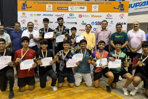 અમદાવાદ ગુજરાત સ્ટેટ ટેબલ ટેનિસ એસોસિયેશનના સહકારથી ટેબલ ટેનિસ લીગ ગુજરાત સુપર લીગ (GSL)નો સોમવારે અહીંના નારણપુરા સ્પોર્ટ્સ કોમ્પલેક્સ ખાતે ઉત્સાહભર્યા વાતાવરણમાં પ્રારંભ થયો હતો. પ્રારંભિક દિવસના પ્રથમ સત્રમાં વર્તમાન ચેમ્પિયન તાપ્તિ ટાઇગર્સ, ટોપનોચ એચિવર્સ અને મલ્ટિમેટ માર્વેલ્સે અનુક્રમે ભાયાણી સ્ટાર્સ, કટારિયા સ્ટાર્સ અને શામલ સ્કવોડની ટીમને હરાવી હતી.લીગના સૌથી વયસ્ક ખેલાડી એન્થની અમલરાજ (તાપ્તિ)…