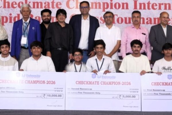 અમદાવાદ એલજે યુનિવર્સિટીમાં એલજે ચેકમેટ ચેમ્પિયન ઇન્ટરનેશનલ રેપિડ રેટિંગ ચેસ ટુર્નામેન્ટમાં 2000 ખેલાડીઓએ ભાગ લઈ ઐતિહાસિક સિદ્ધિ હાંસલ કરી હતી. આ ઇવેન્ટ ઇન્ટરનેશનલ ચેસ ફેડરેશન (FIDE) ખાતે આ પ્રકારની પ્રથમ ટુર્નામેન્ટ છે, જે વૈશ્વિક સ્તરે ચેસ ઇવેન્ટ્સ માટે એક સંપૂર્ણપણે નવો ધોરણ સ્થાપિત કરે છે. FIDE (વર્લ્ડ ચેસ ફેડરેશન) ના નેજા હેઠળ આયોજિત એક જ…